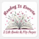 Vibrant, colourful design featuring an open book with wildflowers. The colourful text reads: "Reading is exercise. I lift books & flip pages". This design is available on a wide variety of products.