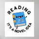 Reading It's A Novel Idea Funny Book Pun features a cute book. Perfect pun gift for family and friends who love cute book puns.