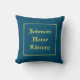 Customise this pretty ocean / navy blue and yellow elegant family home library throw pillow with your own family's name, just a first name or just a last name, or even all new words. A colourful and comfy way to establish the location of a home library, reading nook, or reading corner. This home library or reading nook accent cushion is set up with a cotton fabric cover, but there are other washable fabric choices as well.