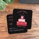 Some lovely black square contact cards for educators with a stack of 3 red pinkish books and a cup of steaming coffee , Use the provided template to fill them out with your own info .