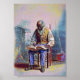 Watercolor Rendition Of Thomas Waterman Wood's Painting Reading The Scriptures. This display of African American art reflects the newly emancipated slave as he educates himself by reading the scriptures.