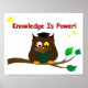 The original wise owl wearing a tassel and reading on a tree with a quote of an English philosopher, Francis Bacon, "Knowledge Is Power!" Great for students and book lovers! Unique gifts for back-to-school, graduations, school events, and other special occasions!