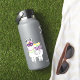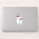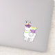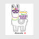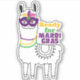 Ready for Mardi Gras sticker with a cute cartoon llama wearing green, yellow and purple beads and a feathered mask. Carnival symbols and colours that are part of the tradition in New Orleans during Mardi Gras to celebrate Fat Tuesday, which falls this year on February 21, 2023.