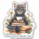 Step into the back-to-school season with the cool confidence of a cat! The 'Inscrutable Like a Cat, Ready For School Like A Boss' sticker features a stylish black cat lounging confidently in front of book stacks and a cup of coffee. Combining humour, charm, and determination, this design is perfect for students and cat lovers who tackle challenges with poise and style.