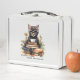 Step into the back-to-school season with the cool confidence of a cat! The 'Inscrutable Like a Cat, Ready For School Like A Boss' lunchbox features a stylish black cat lounging confidently in front of book stacks and a cup of coffee. Combining humour, charm, and determination, this design is perfect for students and cat lovers who tackle challenges with poise and style.