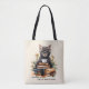 Step into the back-to-school season with the cool confidence of a cat! The 'Inscrutable Like a Cat, Ready For School Like A Boss' tote bag features a stylish black cat lounging confidently in front of book stacks and a cup of coffee. Combining humour, charm, and determination, this design is perfect for students and cat lovers who tackle challenges with poise and style.