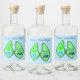 This awesome set of liquor bottle labels features a graphic image of a green Pea pod containing 2 green peas and a big blue pea. The large blue pea has a cute little face with eyes and a mouth. On the other side of the pea pod in darker pink text it says "Baby Boy Ready to Pop".