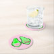 This awesome paper coaster features a graphic image of a green Pea pod containing 2 green peas and a big pink pea. The large pink pea has a cute little face with eyes and a mouth. On the other side of the pea pod in darker pink text it says "Baby Girl Ready to Pop".