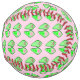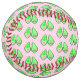 This awesome softball features a graphic image of a green Pea pod containing 2 green peas and a big pink pea. The large pink pea has a cute little face with eyes and a mouth. On the other side of the pea pod in darker pink text it says "Baby Girl Ready to Pop".