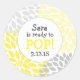 Ready to Pop Baby Shower Favour / yellow dahlia mu Classic Round Sticker