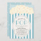 Ready to Pop Popcorn Blue Stripe Boy Baby Shower Invitation
