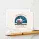 Ice pop themed gender neutral baby shower with illustration of camper with red white and blue ice pop on top, with baby clothes hanging on line, and fireworks in the sky.