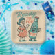 "READY TO POP!" This absolutely charming retro 1950s-inspired design features a sweet pregnant woman in a coral polka dot dress standing next to a cheerful anthropomorphic soda pop bottle—both ready to pop! The vintage cartoon aesthetic, warm nostalgic color palette, and playful pun create the perfect celebration of expectant motherhood.