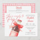 This fun baby shower invitation features a retro soda bottle with a pretty red bow and can be personalized with your details set in stylish typography. The reverse features your event details and registry QR code on a red gingham background. Designed by Thisisnotme©