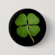 Real 4 leaf clover shamrock black pin/button. Background colour can be customised.