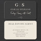 Professional business card designed for real estate agents using a sleek black color palette. The layout keeps contact details clear and easy to read while maintaining a polished, professional appearance. Suitable for real estate agents, brokers, and property professionals. Fully customizable text with a print-ready layout.