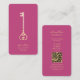 Real Estate Agent Elegant Pink Gold Key Modern business card with QR code