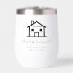 Modern and minimalist realtor wine glass you can easily customise with your name, company and phone number by using the "Personalise" button. A perfect gift for a client, a house buyer, or a realtor featuring an outline of a house and script and modern typography.