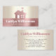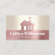 Present your best self to your clients. A simple, pink rose gold faux brushed foil metallic, modern house icon and bold, white typography on a pink rose gold brushed foil metallic band overlay a soft shimmer, champagne gold foil ombre metallic background on this chic, elegant, graphic business card. Personalise with your full name and business on the front. Fill in the back side with your phone numbers, address, email, website, and social media accounts. Makes a chic, professional, and stylish statement wherever you go.