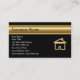 Real estate business cards with house symbol and gold coloured name emblem, along with a great text area you can customise in this modern design. Best business cards for themes related to real estate, realtors, brokers, builders, or handyman.