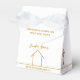 This modern realtor custom favour box is the perfect way to congratulate a homebuyer on their new house purchase or to pass out during an open house. Congratulations on your new home or a different custom message for open house marketing.. These minimalist gold and white boxes feature a simple line drawing of a house for a simple, chic real estate agency business.