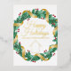This beautiful realtor Christmas card is custom made with your realty company name under the the agent name in chic gold foil typography within a festive red and green holly berry wreath with gold garland wrapping around the greenery. Contemporary holiday cards for agent marketing this winter.