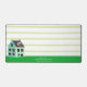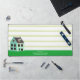 Cute custom real estate company desk mat for a realtor to use at the office. Customise the realty text with your own realtor business information in white on the green grass under the house.