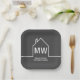 This dark grey personalised realtor paper plate is simple and subtle with your monogram and real estate company name in white. It features a chic minimalist white outline of a home. Modern realty business marketing at an open house.