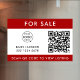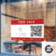 A simple "For Sale" QR code real estate vinyl window cling decal sign in a modern minimalist style with a dark red feature colour. The agent details and other text can be customised for any sale including the easy upload of your agency logo and QR code for the property listing (house, lot or land for sale). #realestate #QRcode #forsalesign