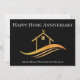 This chic Happy Home Anniversary card is custom made with your realty company name in white typography. These classy black and gold cards feature a pretty house with a weathervane on top and sleek curves underneath. They are perfect to send to past homebuying clients to remind them to refer friends and family who are looking to buy or sell their home. Real estate business marketing means reaching out to repeat customers and asking for their referrals.