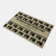 Durable Door Mat for Real Estate Open Houses. This door mat features a stylish house pattern in black and tan colours, making it the perfect addition to any home. Its durable construction ensures it can withstand heavy foot traffic, making it suitable for use at real estate open houses or as a permanent fixture at your front door.