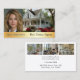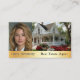 Real Estate Agent Business card with your personal photo on the front with an image of a beautiful home. There is a gold area for your text. Pretty photos of home interiors on the reverse, Customize with your information, choose your favorite font and color.