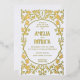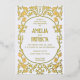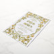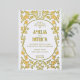 Art Nouveau style floral vertical wedding invitation in gold on white background
