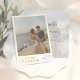 Add some shine to your wedding invitations with real gold, silver, or rose gold foil! This classic and timeless metallic style is sure to add another level to your invites. A modern and minimalist design showcasing two of your favourite engagement photos. The photos don't have to be an official engagement photoshoot; they could be on holiday or at home, any photos of the engaged couple will work! A simple, timeless vibe, focusing on the photos, minimal script calligraphy, and classic typography. A rectangular space with delicate pressed foil lines frames the photo of your choice. At the bottom of the card, there is an ampersand written in beautiful script calligraphy with the two names directly to the right, aligned together to the left in real foil. On the right-hand side, there is the invitation to celebrate and the special date! We have chosen to display only the basic information on the front of the card, so it can be used as a save-the-date or a stylish reminder - perfect to be pinned to a board or stuck to the fridge! These cards are double-sided wedding invitations - so the rest of the information is on the back, which saves buying a separate card for the details! The back of the card has all of the ceremony information in a combination of elegant serif typography and modern script lettering. Behind the text, there is a second photo, covered with a semi-transparent white overlay, so that the text stands out clearly against the background. All fonts, colours, pictures, and placement are fully customisable to suit your needs. If you want to edit fonts, placement, foil, or colours, simply scroll to "Click to customise further" and use the Zazzle design tool. You can easily choose from gold, silver, and rose gold foil from the tool above. For more advanced customisation, scroll to "Click to customise further" and use Zazzle's intuitive design tool to edit instantly! Don't hesitate to contact me with any questions or custom requests - I will be happy to help!
