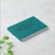 Real Foil Elegant Teal Green Calligraphy Script Wedding Guest Books features elegant modern silver calligraphy script typography with your names and wedding date below. Add your custom text on the spine of the guest book. Created by Evco Studio. www.zazzle.com/store/evcostudio