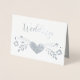 Real Silver Foil Floral Heart Typography Wedding Invitations. White Inside Typography.