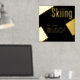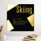 This real gold foil poster art features a unique design about the definition of Skiing in real gold foil which reads: "Skiing is a sport where you spend an arm and a leg to break an arm and a leg."