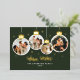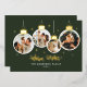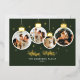 Foil-pressed photo ornament Christmas cards with “Warm Wishes” greeting deliver a festive, upscale touch for your holiday greeting cards. Featuring four custom photos styled as hanging ornaments, this elegant card design is accented with real gold, silver, or rose gold foil detailing that enhances the sparkling stars and handwritten script. Set against a deep olive green background, the metallic foil adds eye-catching brilliance and a premium feel. Each ornament is topped with a foil-embellished cap, creating a joyful and modern presentation that beautifully displays your favorite family moments. Perfect for stylish holiday cards, custom family greetings, or chic Christmas photo keepsakes.