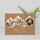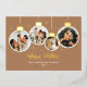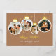 Foil-pressed photo ornament Christmas cards with “Warm Wishes” greeting deliver a festive, upscale touch for your holiday greeting cards. Featuring four custom photos styled as hanging ornaments, this elegant card design is accented with real gold, silver, or rose gold foil detailing that enhances the sparkling stars and handwritten script. Set against a caramel tan brown background, the metallic foil adds eye-catching brilliance and a premium feel. Each ornament is topped with a foil-embellished cap, creating a joyful and modern presentation that beautifully displays your favorite family moments. Perfect for stylish holiday cards, custom family greetings, or chic Christmas photo keepsakes.
