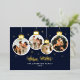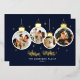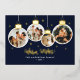 Foil-pressed photo ornament Christmas cards with “Warm Wishes” greeting deliver a festive, upscale touch for your holiday greeting cards. Featuring four custom photos styled as hanging ornaments, this elegant card design is accented with real gold, silver, or rose gold foil detailing that enhances the sparkling stars and handwritten script. Set against a navy blue background, the metallic foil adds eye-catching brilliance and a premium feel. Each ornament is topped with a foil-embellished cap, creating a joyful and modern presentation that beautifully displays your favorite family moments. Perfect for stylish holiday cards, custom family greetings, or chic Christmas photo keepsakes.