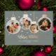 Foil-pressed photo ornament Christmas cards with “Warm Wishes” greeting deliver a festive, upscale touch for your holiday greeting cards. Featuring four custom photos styled as hanging ornaments, this elegant card design is accented with real gold, silver, or rose gold foil detailing that enhances the sparkling stars and handwritten script. Set against a muted slate grey background, the metallic foil adds eye-catching brilliance and a premium feel. Each ornament is topped with a foil-embellished cap, creating a joyful and modern presentation that beautifully displays your favourite family moments. Perfect for stylish holiday cards, custom family greetings, or chic Christmas photo keepsakes.