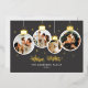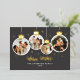 Foil-pressed photo ornament Christmas cards with “Warm Wishes” greeting deliver a festive, upscale touch for your holiday greeting cards. Featuring four custom photos styled as hanging ornaments, this elegant card design is accented with real gold, silver, or rose gold foil detailing that enhances the sparkling stars and handwritten script. Set against a charcoal gray background, the metallic foil adds eye-catching brilliance and a premium feel. Each ornament is topped with a foil-embellished cap, creating a joyful and modern presentation that beautifully displays your favorite family moments. Perfect for stylish holiday cards, custom family greetings, or chic Christmas photo keepsakes.