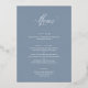 MYRA FOIL • This classic script wedding dinner menu card is designed for romantic and/or formal weddings. The dusty blue background along with the real silver foil headers, the fabulous script calligraphy, and the formal style for the copy text combined make this timeless collection a perfect design for a classic wedding stationery. Also a nice pick for fairy-tale weddings.