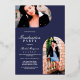 This elegant and modern graduation party invitation is perfect for your son or daughter. It features real gold, rose gold, or silver foil geometric linear circles, arch, and three feature photos of the guest of honour on a simple navy blue background. It's chic, contemporary, luxe, and stylish; the perfect design to send to friends and family.