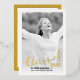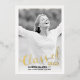 real gold foil Modern Class of 2023 script gold border photo invitation/announcement. It features a photo of the graduate and the text "Class of 2023 in real gold foil.