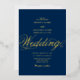 A beautiful real gold foil wedding invitation with traditional script typography. A stunning navy blue and gold wedding invite design with minimalistic classy typography. Traditional script typography creates a timeless elegant gold foil wedding invitation design.