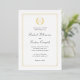 Add a luxurious feel to your wedding invitations with real gold foil. This elegant, timeless design features a simple laurel wreath framing the couple's initials. Inspired by 1920s invitations, it blends classic formality with modern flair, using a serif font, vintage calligraphy script, and a traditional Art Deco border. Personalise the template with the couple's names, monogram, and ceremony details — all the text can be customised. Premium white paper with a satin finish, and raised gold foil adds a premium finish. Printed colours: black and real gold foil. Available in gold, silver or rose gold foil. Shop the collection for matching wedding stationery and supplies for sale online!