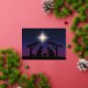 This beautiful Nativity scene Christmas card has a nightime view of the stable and manger with Mary and Joseph overlooking the Lord Jesus with a bright shining star above. The words "Jesus is the Reason for the Season" are printed in REAL gold foil in the upper portion of the front side of this folde card. The inside has a SIMULATED gold look scroll frame with customisable goldtone wording that can be changed to say whatever you want. The gold foil words on the front can also be changed to something else and you can also change the font yourself by going into the design screen mode using the EDIT further option. Add a business logo or contact me at niteowlstudio@gmail.com if you need assistance customising this card.