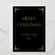 Black and real gold foil Great Gatsby Art Deco style Merry Christmas holiday card with changeable text (in the front and at the bottom of the card)