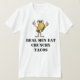 No soft tacos for real macho guys, right? They want to crunch!! This t-shirt features a crunchy taco characters giving thumbs up to crunching. The Text reads, "Real Men Eat Crunchy Tacos" below him. But, you are free to change that to something else, or delete it if you want the graphic only. If you change the colour of the t-shirt, CHANGE THE FONT COLOR to fit it as well! Just go to customise to do that. Designed by Sheila Cicchi, Brownielocks.com, All Rights Reserved.